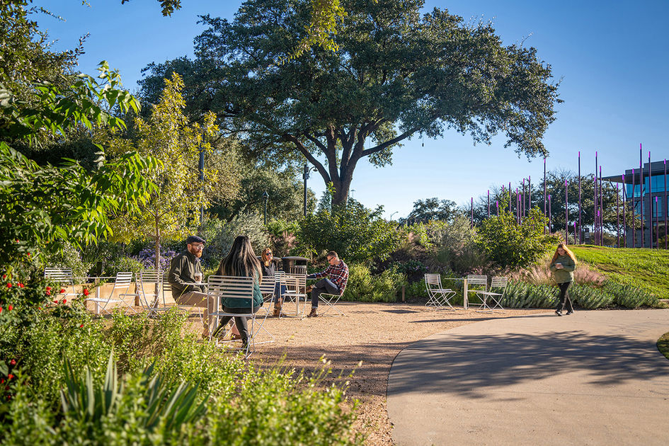 Named for the annual gatherings held by the St. John Baptist Association, an African American community who owned the land beginning in the late 19th century, the signature park at the new Austin Community College Highland Campus transformed a former mall parking lot into a crucial open space to support a new generation of Austinites.